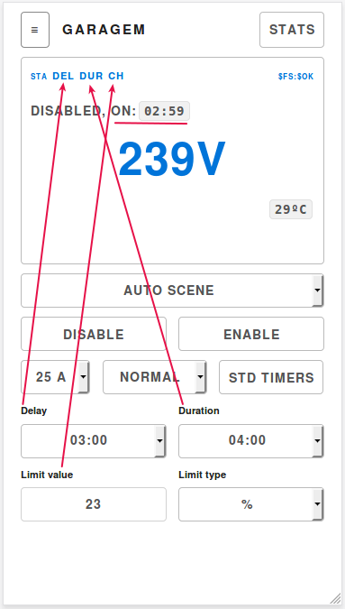 Ao definir um End Time e um um par de valores Start SOC e End SOC válido, o temporizador irá calcular o tempo necessário para carregar o veiculo, tendo em conta o valor de AMPERES configurado na página principal. Com esse valor é possível estimar a hora de inicio, e configurar um DELAY, DURATION e LIMIT automaticamente.