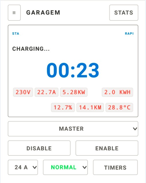 Quando um dispositivo se liga ao EVSE por WiFi recebe um endereço IP através de DHCP. Abrir um navegador de Internet e navegar para o seguinte endereço http://10.1.1.1