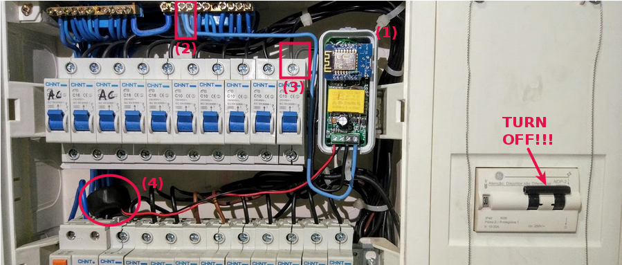 Antes de fazer qualquer alteração no quadro elétrico é obrigatório desligar o disjuntor geral do fornecimento de energia.
